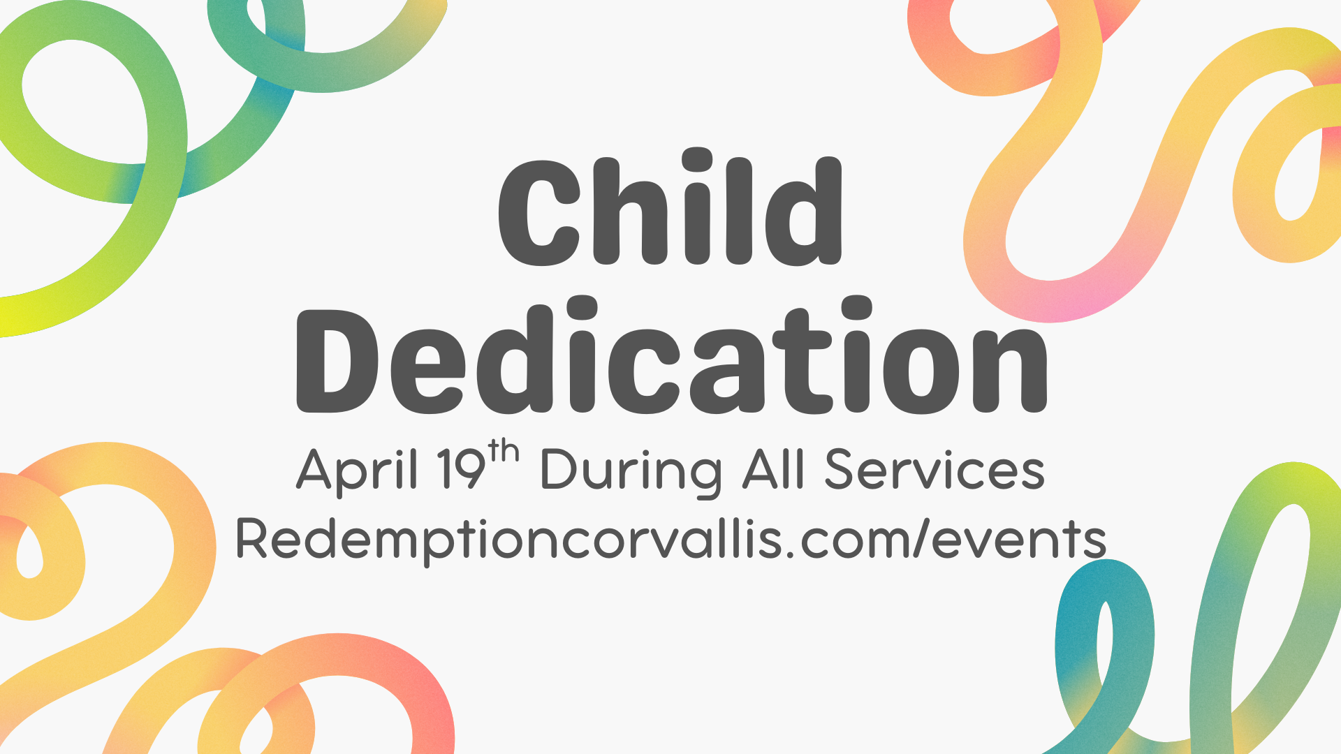 We are having Child Dedication during all three services on the 19th. This is just a time for parents to commit to raising up their kids to know Christ and a time for our church family to commit to helping you do that. If this is something that you want to do, fill out the form here.