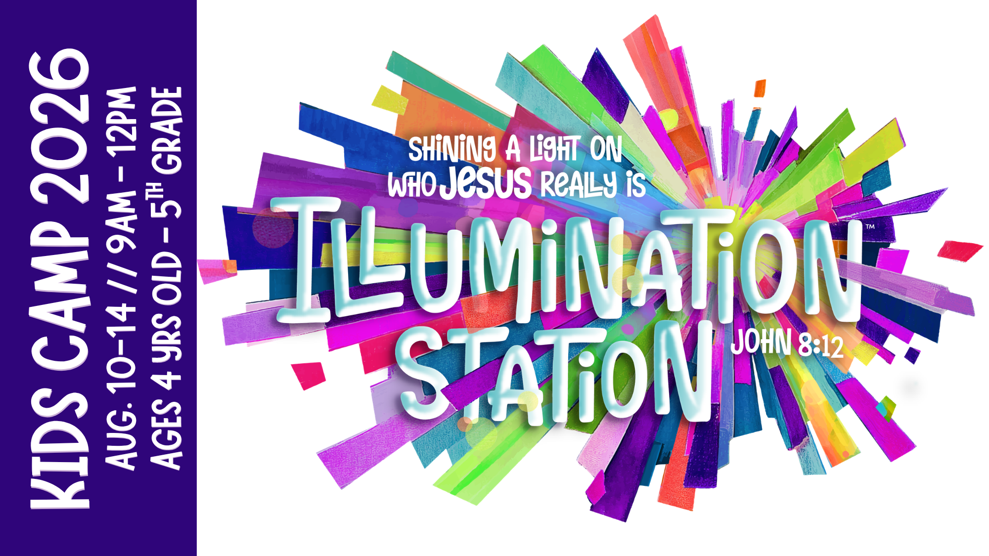 Our Kids Camp theme this year is "Illumination Station," where we will shed light on who God really is and discover what it means when the Bible says WE are the light of the world. You can register your kids now by clicking below!
