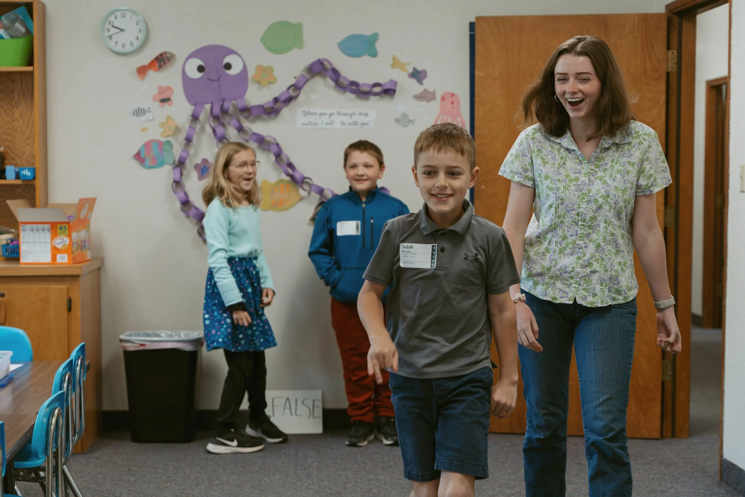 Check-in for all kids is at the preschool building! Once you have checked in all your kids, the elementary school-aged children will report to their classroom in the education building. If it is your first time visiting us there are many people that will help you find what classroom your kids should be in. You and your child will be given a corresponding sticker to pick your child up at the end of the service!